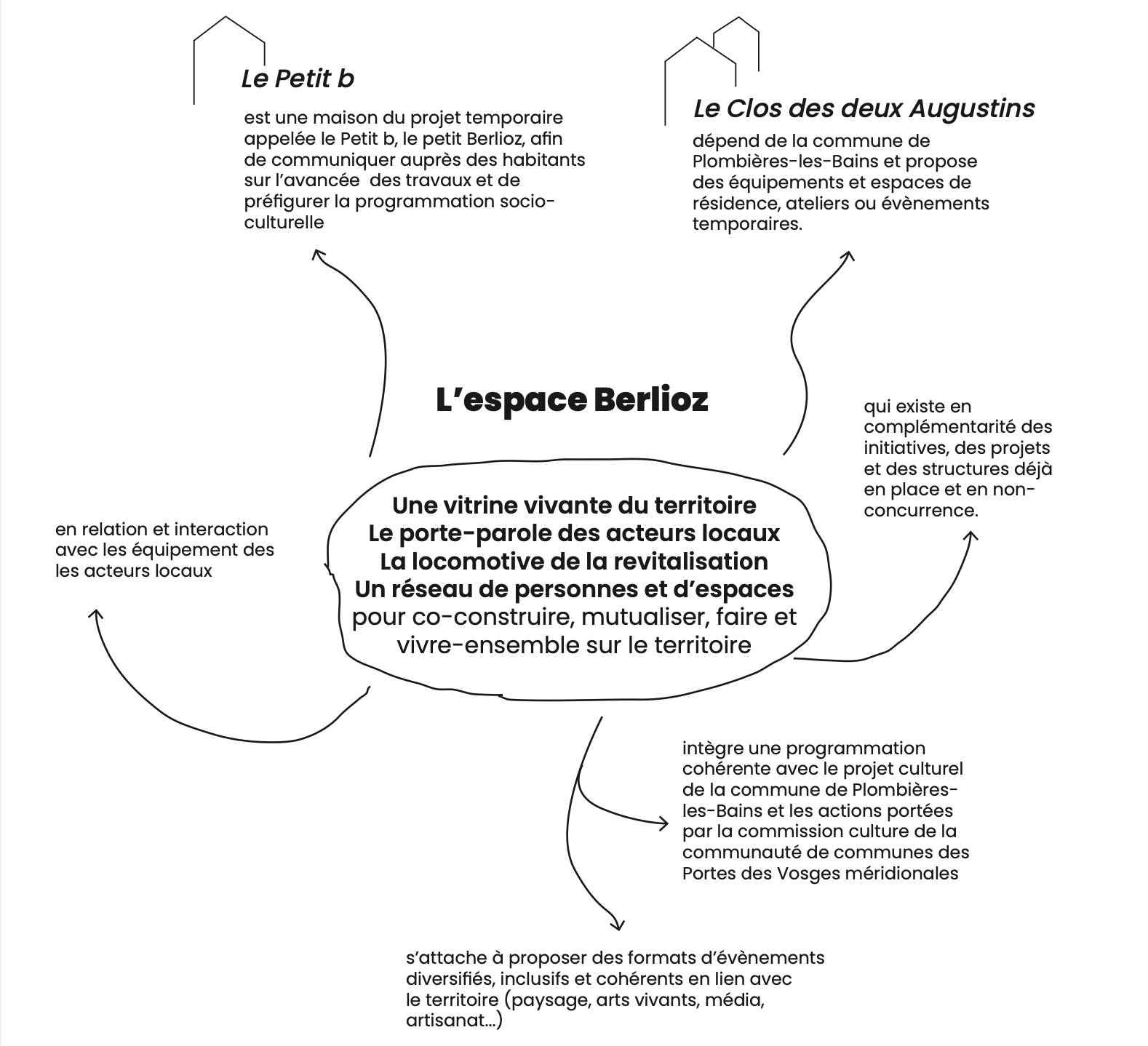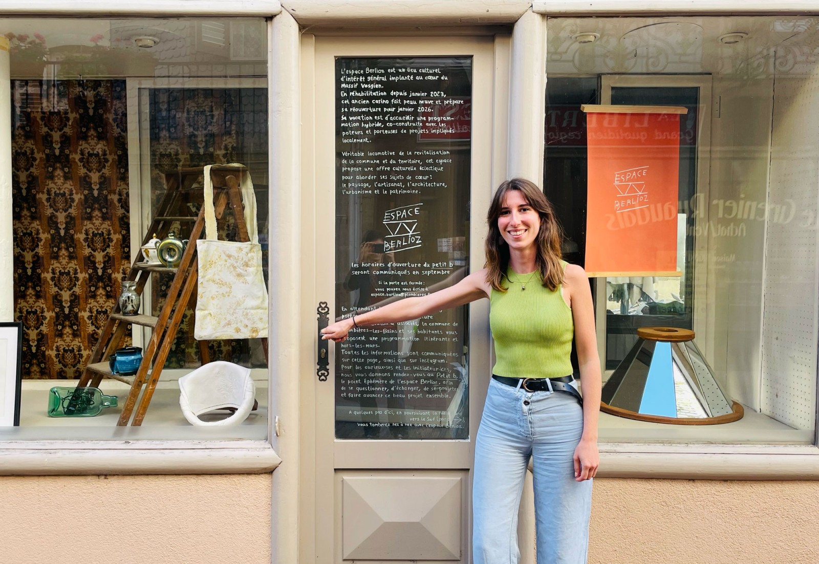 En collaboration avec la commune de Plombières-les-Bains, et principalement grâce à Cordélia Faure, chargée de l'animation, de la communication et de la médiation du projet, nous avons ouvert le petit b., le lieu éphémère et transitoire de l’espace Berlioz. C’est un petit Berlioz, où l’on préfigure en petit ce qui se passera en grand, à l’ouverture