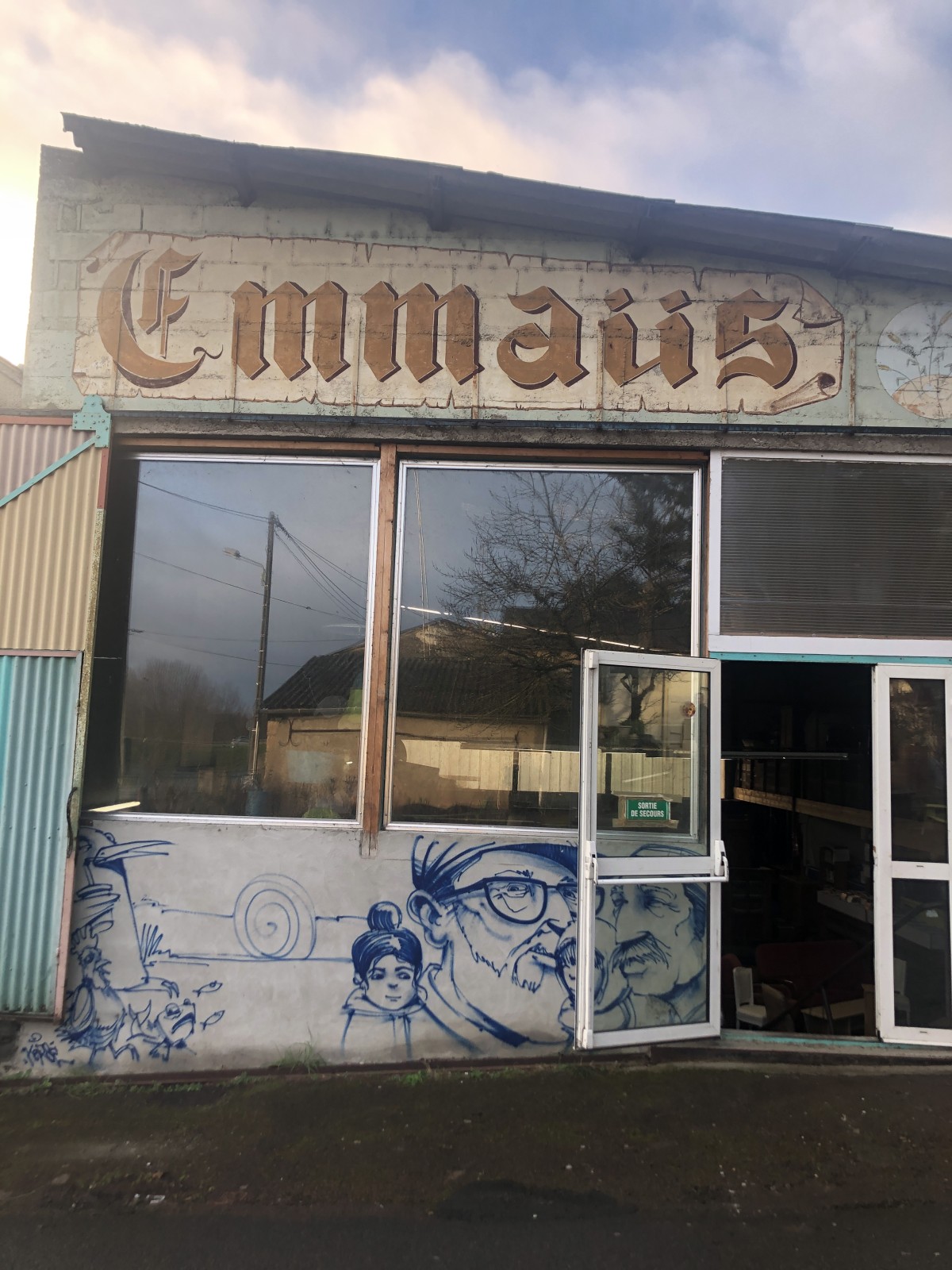 La communauté Emmaüs de Thouars est installée sur un site au Nord de la commune, en bordure de la rivière du Thouet. Un lieu que les compagnons et compagnes ont aménagé, au fur et mesure des années, pour répondre au mieux à leurs besoins. Celui de l’accueil inconditionnel – socle des valeurs d’Emmaüs, celui de la collecte et la vente d’objets – activité majeure de la communauté, ou encore celui de moments de vie collective, autour d’une salle commune qui devient autant un lieu de repas, que de projections, ou de réunions.
