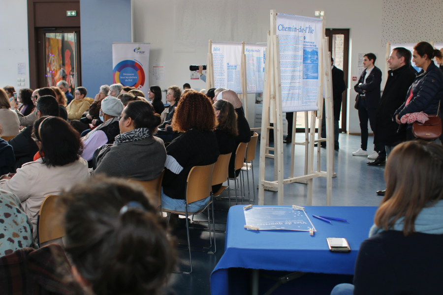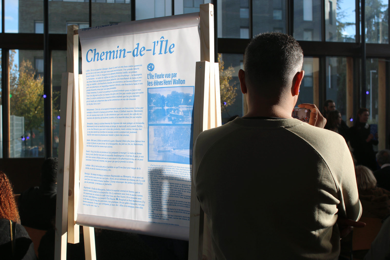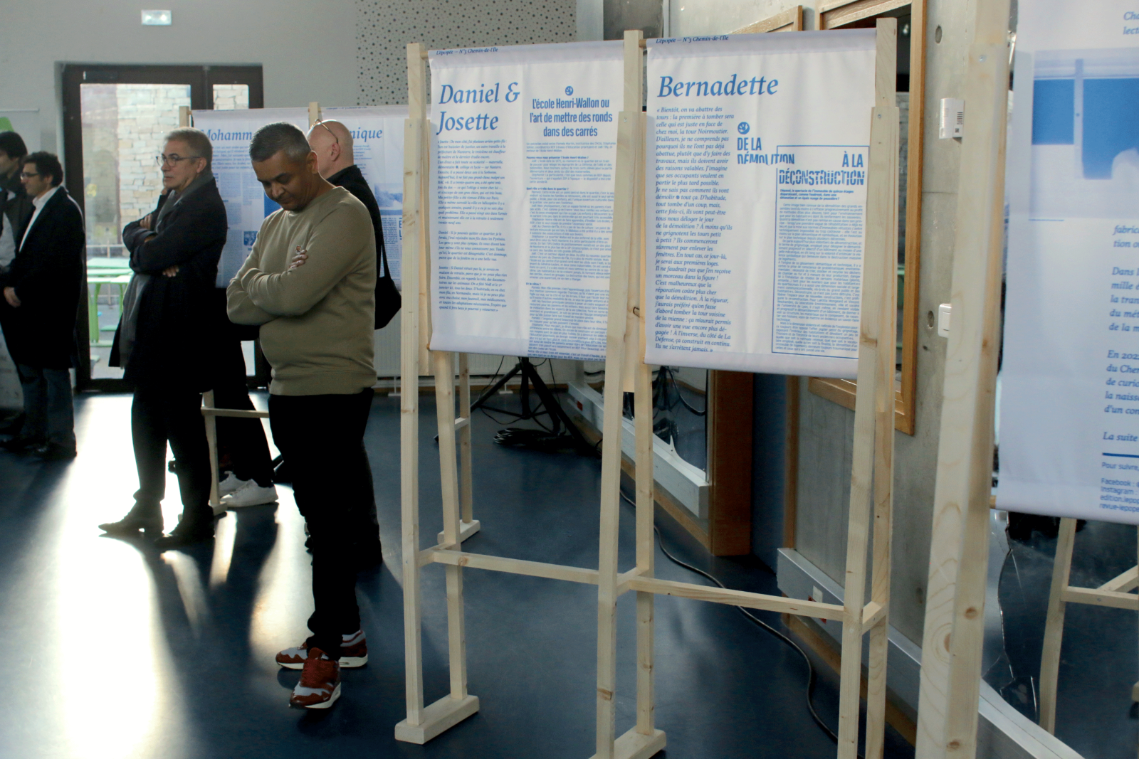 Pour le lancement du troisième numéro de l'Epopée - le roman documentaire qui raconte les territoires de vie à travers les récits biographiques de nos ainé·es, tout terrain à conçu une scénographie d'exposition démontable en bois. Le dispositif se compose de 9 supports de kakémonos, qui présente la vie des 9 héro·ïnes qui ont accepté de partager leur parcours de vie dans ce numéro qui met à l'honneur le quartier du Chemin de l'Île à Nanterre.